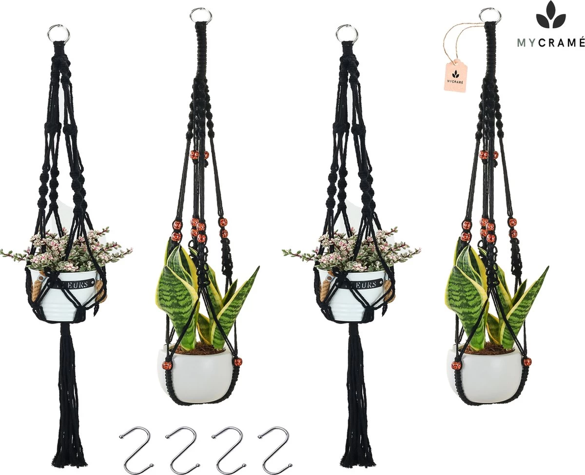 Haal meer groen in huis met deze Mycramé Plantenhanger set van 4! Deze plantenhangers zijn een schitterende toevoeging aan je interieur. Hang ze in je woonkamer, slaapkamer, badkamer of zelfs in je tuin of op je balkon. Deze plantenhangers zijn een eyecatcher in iedere ruimte. Ook leuk als cadeau voor een plantenliefhebber!