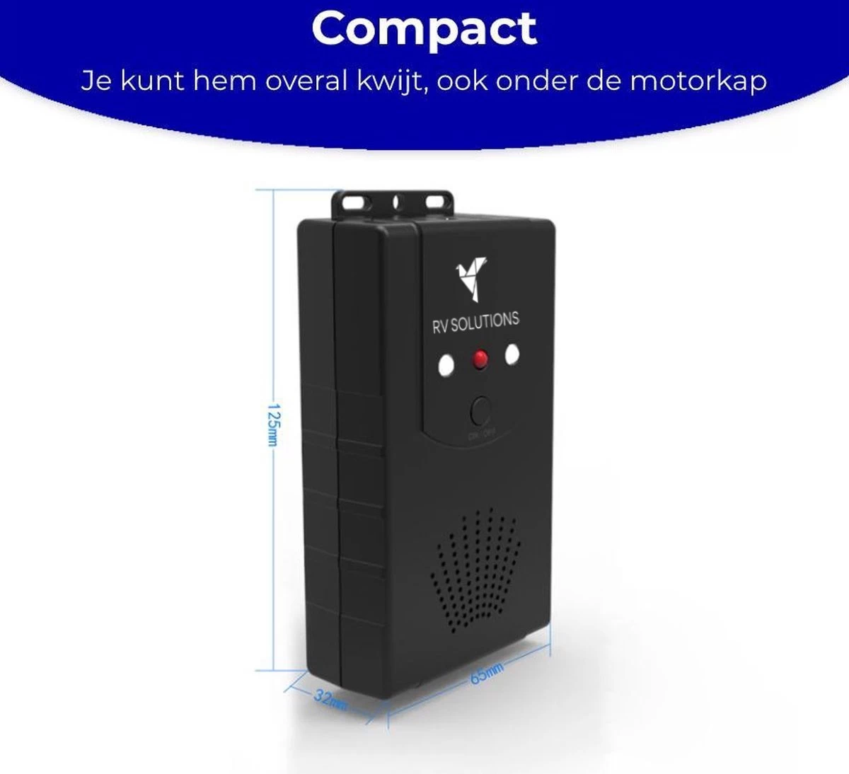 Gloednieuw 2023 model – Ben je moe van steenmarters, marters of muizen die schade aanbrengen in je auto? RV Solutions heeft de oplossing voor jou. Onze all-in-1 marterverjager zorgt ervoor dat je geen last meer hebt van ongedierte rondom je auto, woning of camper. We leveren alle benodigdheden mee, zodat jij je nergens druk om hoeft te maken.