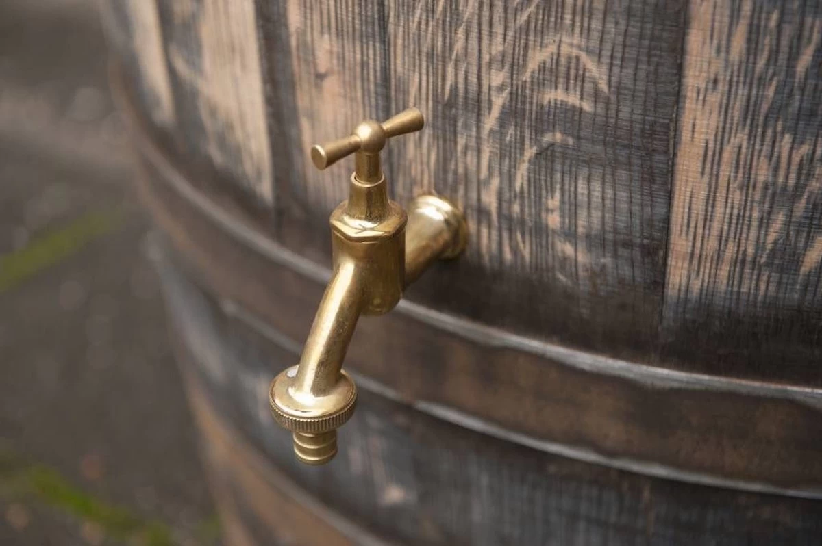 | Verpakkingsinhoud | Regenton 190L, gat vulautomaat, deksel, handvat, messing logo en kraan |