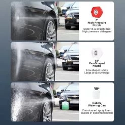 6-IN-1 MULTI-FUNCTIE SNOER: de draadloze elektrische hogedrukreiniger is voorzien van een verstelbaar 6-in-1 mondstuk: 0°, 15°, 25° schuine richting, 40°, schuimstraal, en douchestand of 0° zware straal. U kunt het mondstuk naar wens draaien om een modus aan te passen, waardoor u veel water bespaart. Daarnaast leveren wij ook een mondstuk met reinigingsmiddelreservoir (ongeveer 400 ml), dat kan worden gebruikt voor de dagelijkse reiniging. Snel schuimend, fijn en gelijkmatig schuim, gemakkelijk om de auto te wassen.