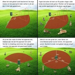 Niet schadelijk voor zowel mensen als dieren. Dieren worden afgeschrikt door de ultrasone golven, het sonar geluid en de lichtflits, maar zullen geen pijn ervaren.