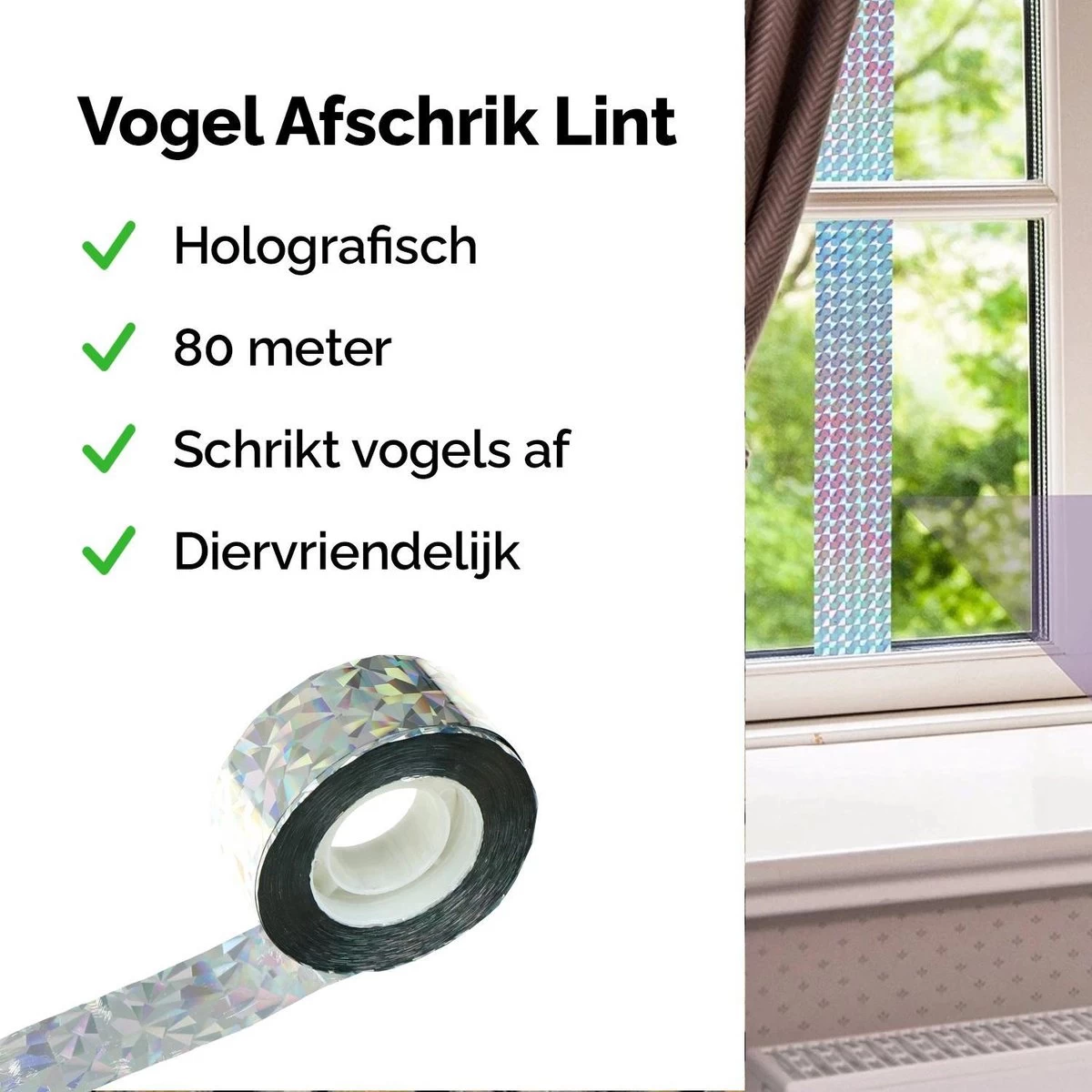 Met het Dayshake Vogel Afschrik Lint zijn ongewenste vogels verleden tijd! Waar vroeger de klassieke cd’s werden opgehangen om vogels te verjagen, is het nu gemakkelijker met dit holografische lint.