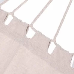 De hangmat voor buiten bestaat uit een ademende 320g/m² ktoen-polyester mix en is zeer aangenaam op de huid. Verder overtuigt deze hangmat door zijn weersbestendigheid en is hij waterafstotend, zodat je de mat zonder aarzeling buiten kunt gebruiken. Bovendien zijn de uiteinden zeer robuust door de gedraaide vlechten en zijn ze bestand tegen een maximale belasting van 300kg.