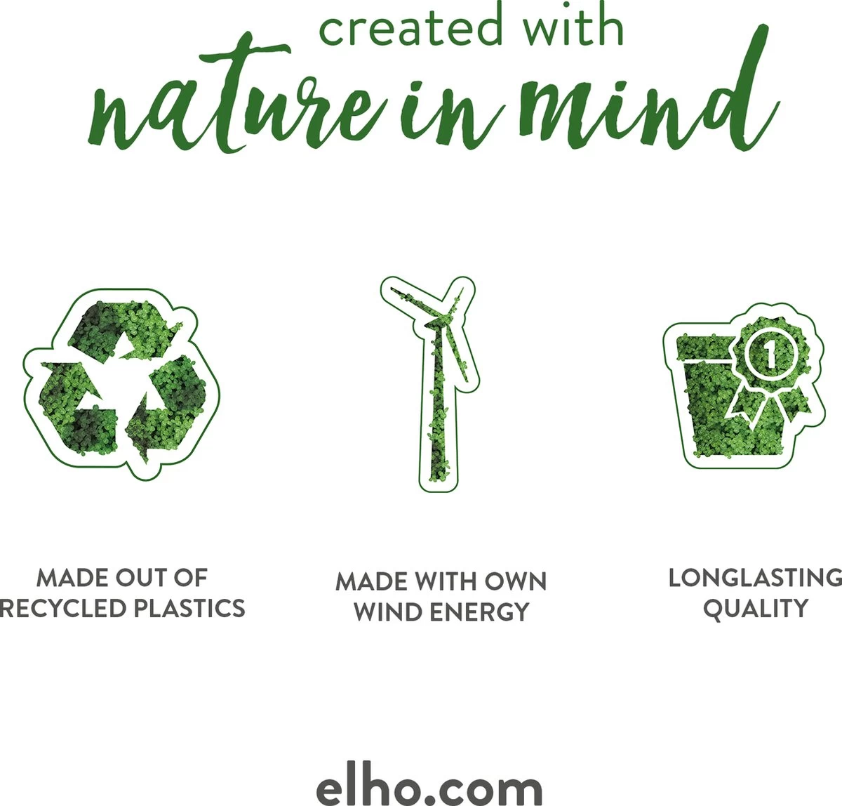 Liefde voor planten betekent natuurlijk ook liefde voor de natuur. Daarom kun je ervan uitgaan dat deze bloempot met de natuur in onze gedachten is gemaakt. Zo is hij gemaakt met gerecycled plastic, volledig recyclebaar én geproduceerd met windenergie van onze eigen windmolen. Die staat namelijk in onze achtertuin (net als het huis voor onze 2.000.000 bijen – die geen potten produceren, maar wel heel goed zijn voor de natuur!). Dat we om de wereld, de natuur en mensen geven is bestempeld met een B Corp certificaat. Dit krijgen bedrijven over de hele wereld die uitblinken op onder andere milieu impact en transparantie. Slechts enkele bedrijven in Nederland hebben dit certificaat en dat maakt ons buitengewoon trots!