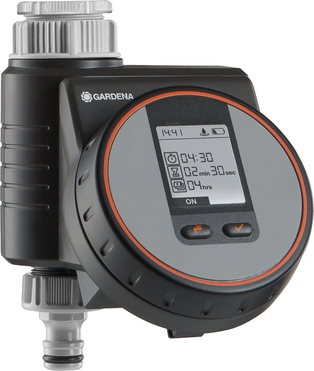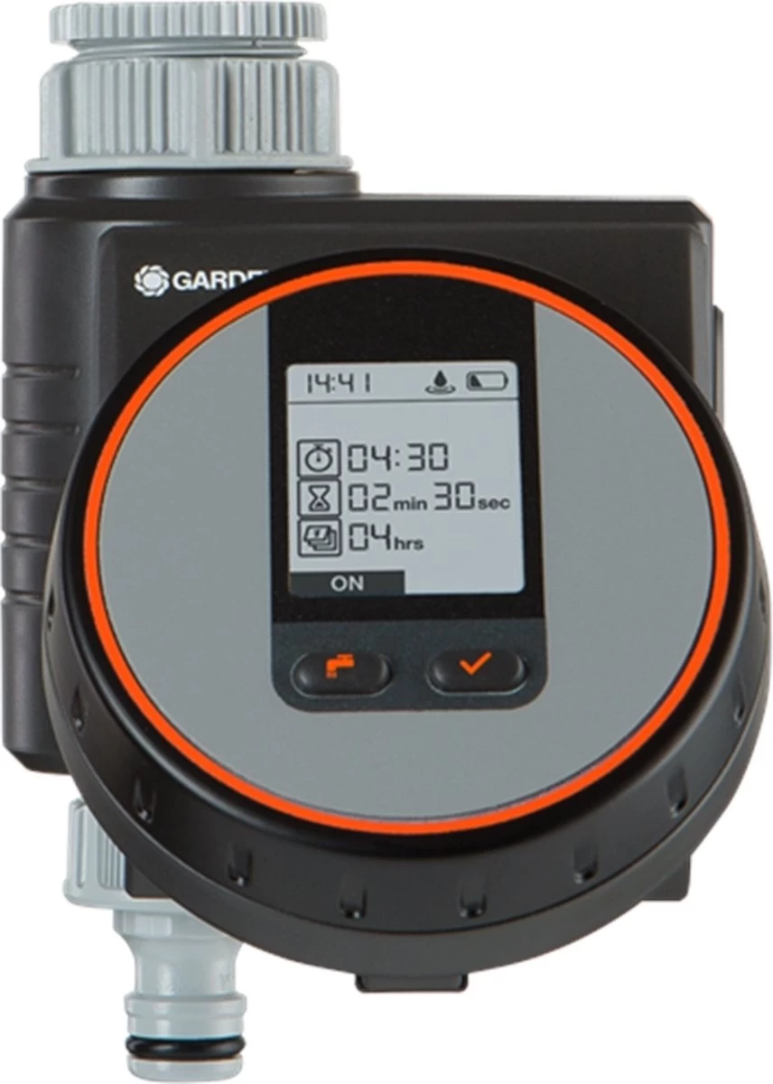 Met de Gardena besproeiingscomputer Flex kan de irrigatie op balkons, dakterrassen of patio’s flexibel en eenvoudig automatisch worden geregeld. Het apparaat werkt op batterijen, kan direct op de kraan worden aangesloten en kan eenvoudig worden bediend via een innovatieve roterende knop voor de selectie van een programma en het bevestigen ervan. Een gemakkelijk leesbaar display toont alle instellingen in één oogopslag. Het weerbestendige bedieningspaneel kan worden verwijderd. Met de besproeiingscomputer Flex kunnen de besproeiingstijden in cycli van seconden worden aangepast, waardoor ze ideaal zijn voor gebruik met een druppelsysteem. Het is mogelijk om deze waterregeling te combineren met een Gardena bodemvochtigheidssensor.