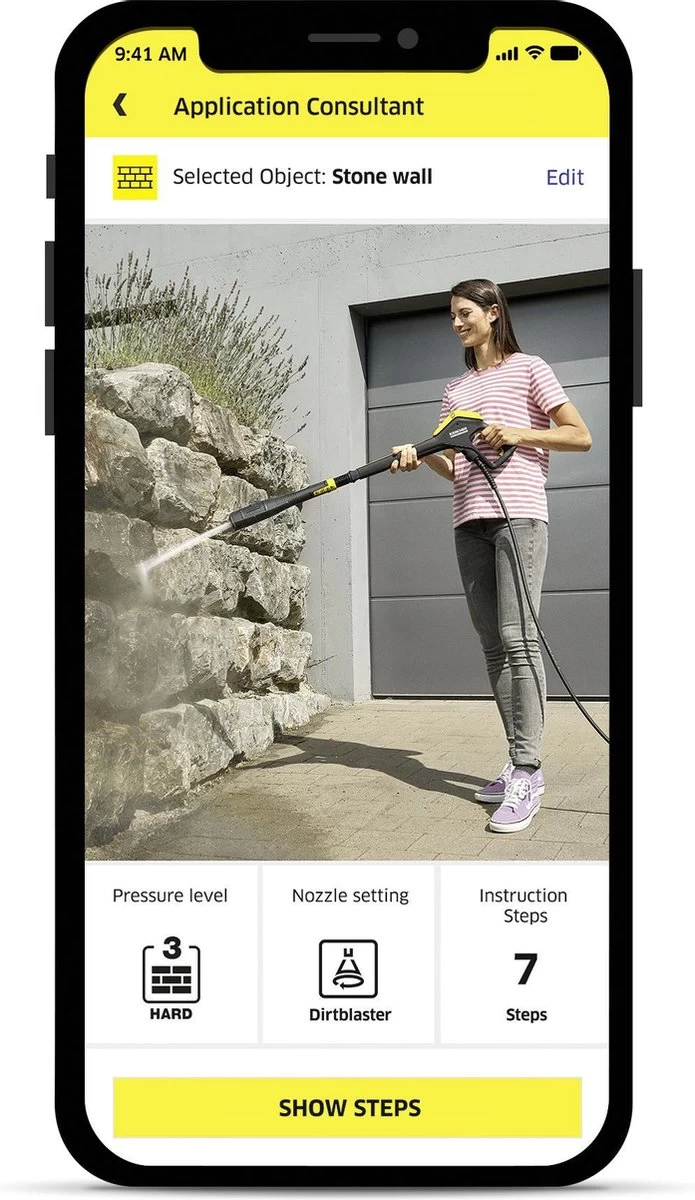 - Met de Kärcher Home & Garden-app word je een schoonmaakexpert. Profiteer van al onze Kärcher-expertise om perfecte reinigingsresultaten te bereiken. De app brengt via bluetooth de optimale druk over naar de hogedrukreiniger.