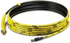 Sewer opening – Robust woven fabric hose: 15 m – Hose with continuous marking – To be combined with a high-pressure cleaner – Marking ring: to follow the progress in the pipeline – 4 high-pressure jets directed towards the back: for uncork or clean gutters and pipes.