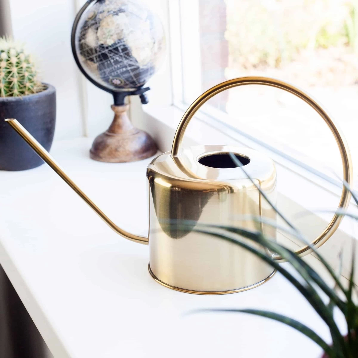 Vintage gieter van Kikkerland. Prachtige gouden gieter met een een vintage uitstraling om de planten binnenshuis water te geven. De lange tuit en brede handgreep maken houden prettig vast en maken het water geven van de bloemen en planten gemakkelijk. De gieter heeft een inhoud van 1,2 liter en staat super leuk als decoratie op bijvoorbeeld de vensterbank.