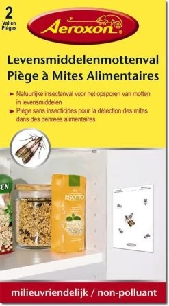Gifvrije en reukloze vallen met lokstof. Alle gedroogde levensmiddelen zoals, noten, muesli, chocoladeproducten, koekjes, thee, gedroogd fruit, granen, zaden en diervoer kunnen door deze motten worden aangetast. Product heeft een levensduur van 6 weken.