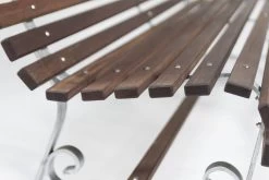 Door de gebruikte materialen is de tuinbank onderhoudsarm en zeer duurzaam; Het tuinbankje is vervaardigd uit 20 mm dik mahonie hardhout met voorgeboorde gaten.