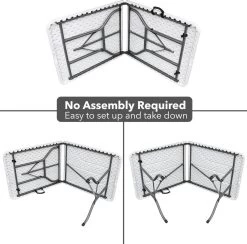 De MaxxGarden opvouwbare tafel is gemaakt van high-density polyethyleen (HDPE) en gepoedercoat staal. Het lichtgewicht ontwerp, draaggreep en auto-lock maken het zeer eenvoudig de tafel op te slaan en voor iedereen gemakkelijk op te zetten en neer te halen. De bank is UV-beschermd, zal niet barsten of afbladderen en is gebouwd voor gebruik binnen en buiten. Het gepatenteerde stalen frame ontwerp biedt een stevige basis en heeft een weerbestendige afwerking. Ideaal voor familiedagen, bbq’s, verjaardagen en nog veel meer, Lifetime’s opvouwbare tafel is de perfecte aanvulling in uw huis.