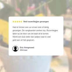 De rouwvliegjes vangkaarten zijn verbeterd na feedback van klanten. Bij de verbeterde versie is de beschermfolie eenvoudig te verwijderen. Hierbij is niet de gehele vangkaart plakkend gemaakt waardoor de vangkaart gemakkelijk te installeren is.
