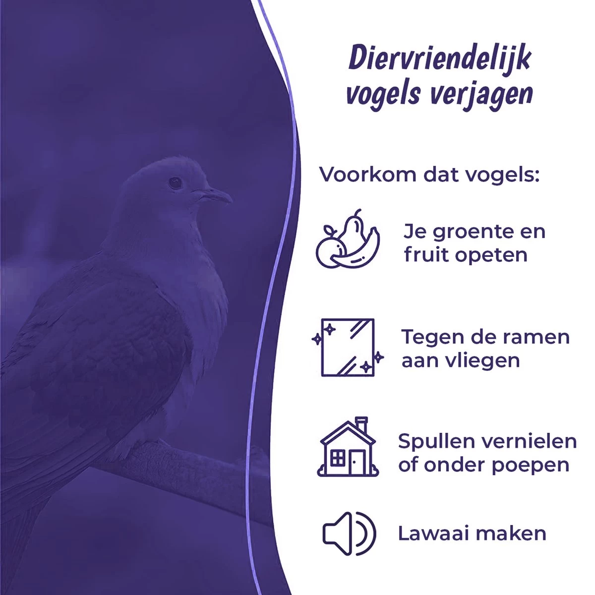 Ben jij er helemaal klaar mee dat de door jouw verbouwde groenten en vruchten telkens worden opgegeten door die lastige vogels? Of ben jij het zat dat jouw spullen worden vernield en onder worden gepoept? Ons holografisch duivenlint is een diervriendelijke duivenwering en perfect als vogelverjager. Deze duivenverjager beschikt over 80 meter aan tape, genoeg om al je gevleugelde vrienden op afstand te houden!