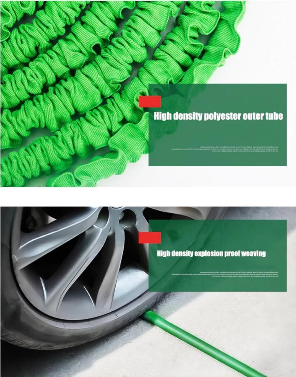 Wanneer de slang niet gebruikt wordt is hij zo compact dat hij past in de palm van je hand. Eenmaal aangesloten en onder druk, strekt de slang zich automatisch uit tot maar liefst 3x zijn eigen lengte! Wanneer druk van de slang wordt gehaald krimpt de slang automatisch terug naar zijn compacte formaat. Zo is hij makkelijk op te bergen zonder kostbare opbergruimte van je schuur op te eisen!