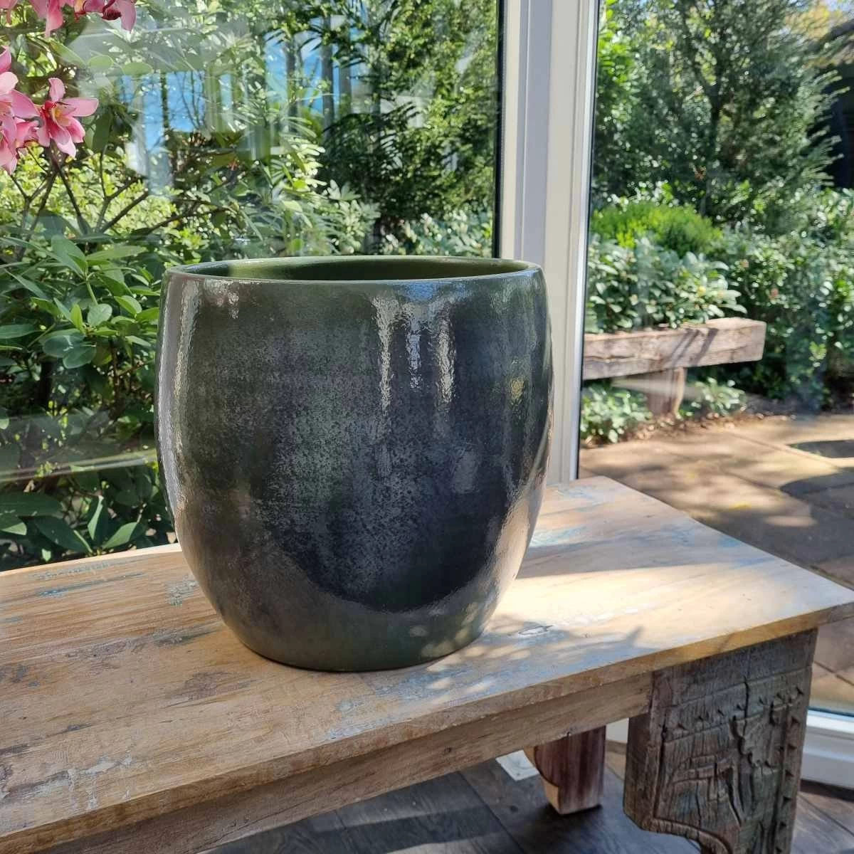 De serie Lester straalt een en al vakmanschap uit. Traditionele, Portugese pottenbakkers werken met veel zorg en aandacht om de potten zo hoogwaardig mogelijk af te werken. Ook deze bloempot. De pot is met de hand vervaardigd uit superieure terracotta klei. De glazuurlaag heeft een groene kleur met lichte kleurnuances, die extra goed uit de verf komt door de glanzende finish. Deze pot laat iedere ruimte stralen! Naast deze bloempot bestaat de Lester serie ook uit andere potten, schalen en vazen in verschillende kleuren en maten. Mooi om met elkaar te combineren! Deze pot heeft een afmeting van H31 x Ø33 cm.