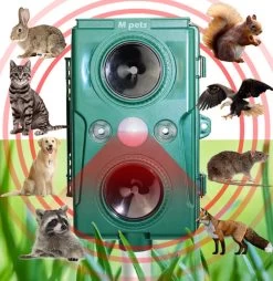 - Hoge frequentie – het hoge ultrasone geluid schrikt katten af, maar is voor de meeste mensen niet hoorbaar. Deze is instelbaar voor verschillende dieren.