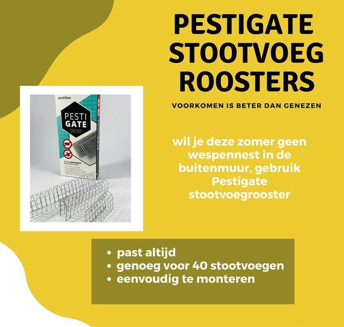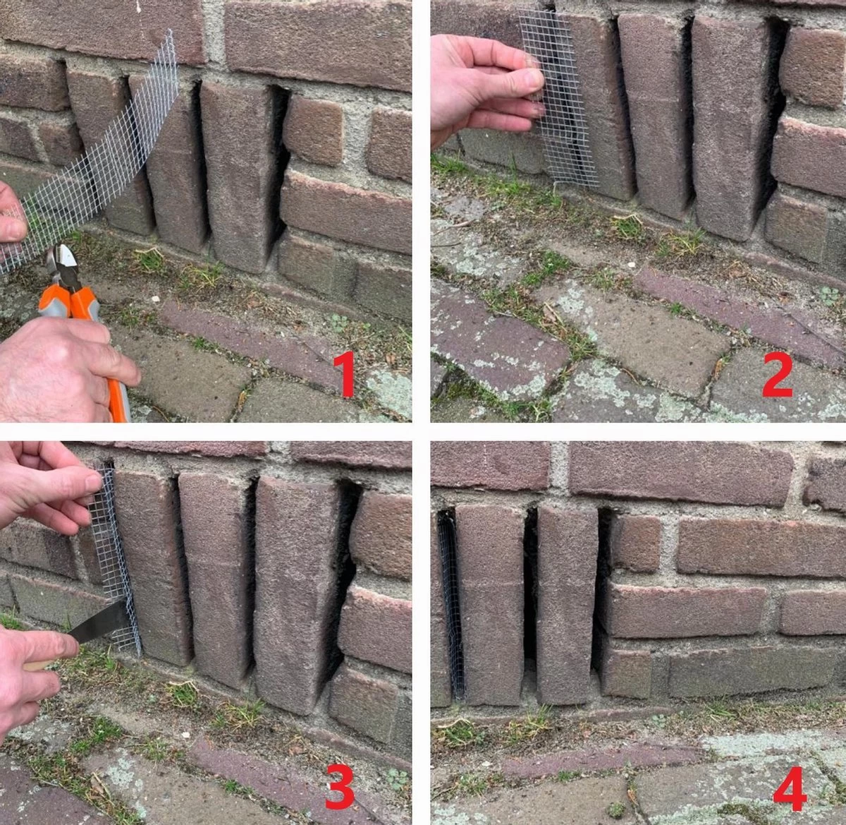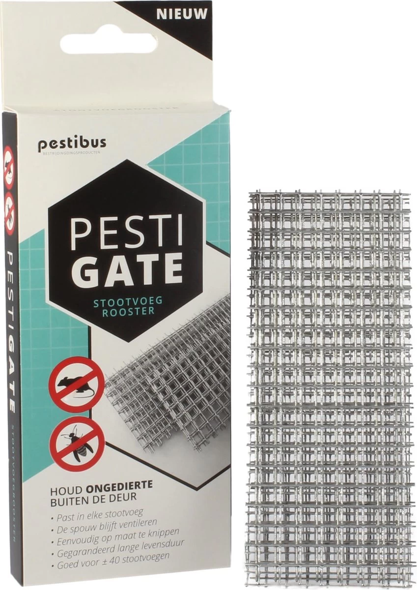 - Weringgaas – muizengaas om een stootvoeg of ventilatiesleuf af te dichten. LET OP de spouw blijft met PestiGate wel ventileren, dit is ZEER belangrijk om geen schimmelvorming op de binnenmuren te krijgen