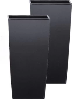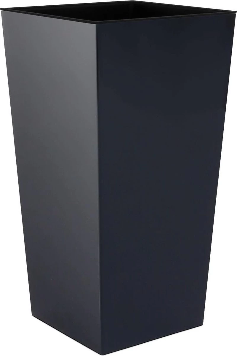 Bloempot/plantenpot met binnenpot. Hoge vierkante sierlijke bloempot met een matte uitstraling. Serie: Urbi Square. Formaat: lengte: ca 19,5 cm. Breedte: ca 19,5 cm. Hoogte: ca 37,5 cm. Inhoud: 5 liter met binnenpot, 11,4 liter zonder binnenpot. Materiaal: kras en stootvast kunststof. Zonder afwateringsgaten. Geschikt voor binnen en buiten gebruik.