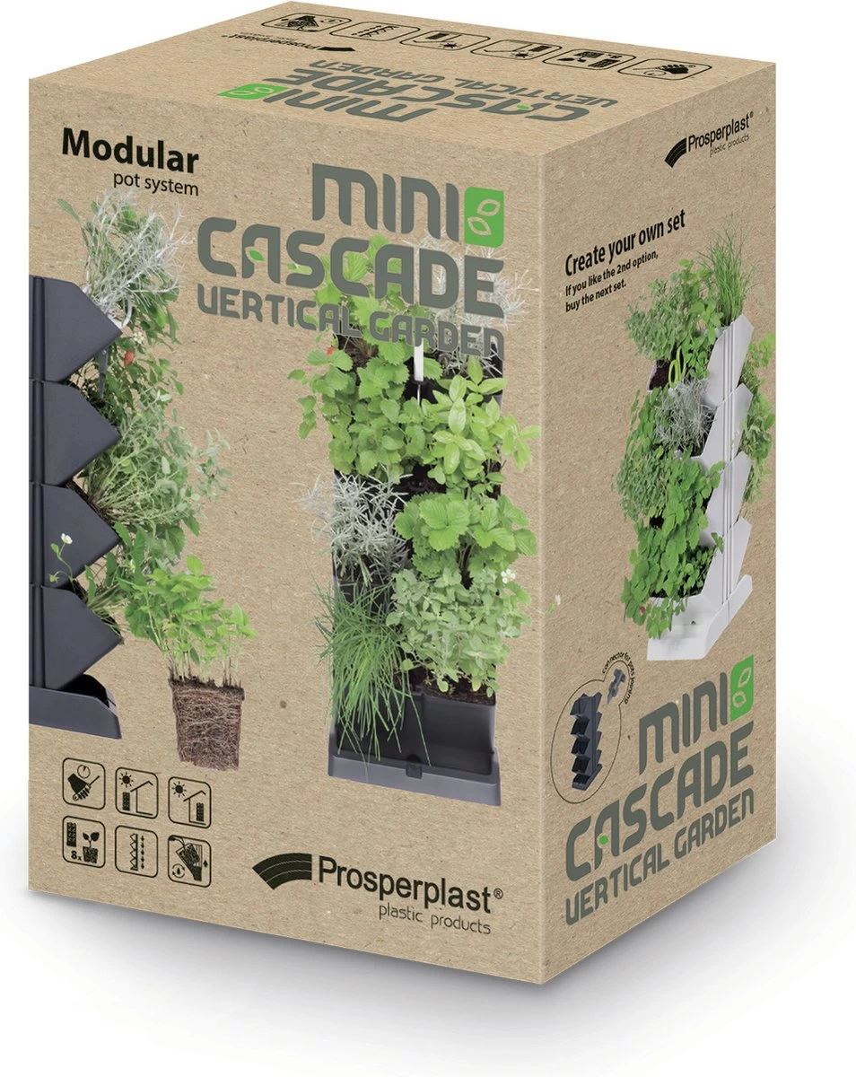 Verticale kruidentuin kunststof staand/hangend modulair antraciet grijs 20 x 11 x 48 cm.