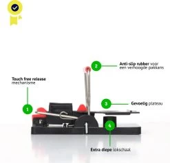 Leg een kleine hoeveelheid lokmiddel in de lokschaal (ronde opening). Leg vervolgens de muizenval plat neer op een vlakke ondergrond. Zet de val op scherp. Bij het vangen van een dode muis druk de hendel naar beneden, zodat de val zich opent. Het is niet nodig om de muis aan te raken.