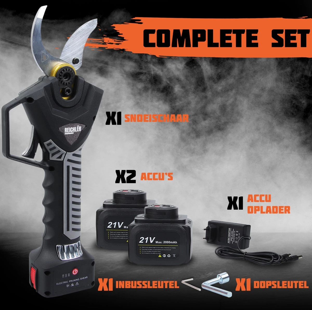 Wil je een elektrische snoeischaar waarmee je zowel dunne als dikke takken moeiteloos kan snoeien? Dan is deze slimme takkensnaar van Reichlër® een absolute must-have! De heggenschaar is speciaal ontworpen met snijbladen in de vorm van een papegaaienbek die gemaakt zijn kwalitatief hoogwaardig carbon, waardoor ze vlijmscherp zijn. Dit zorgt ervoor dat het uitermate geschikt is voor takken met een dikte tot wel 40 millimeter.