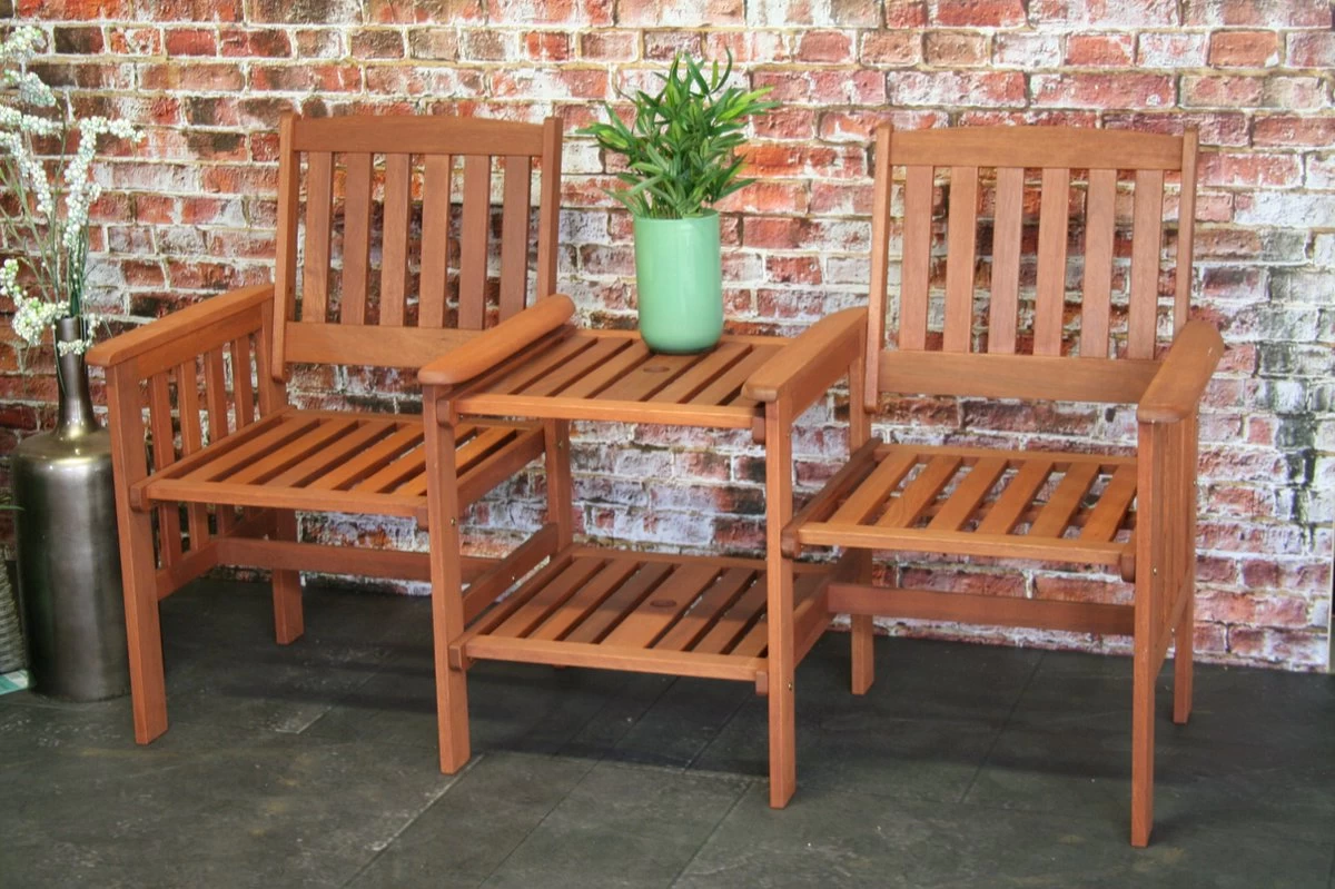 Deze Twinseat is de ideale duo-tuinstoel om z’n tweetjes gezellig buiten te zitten.