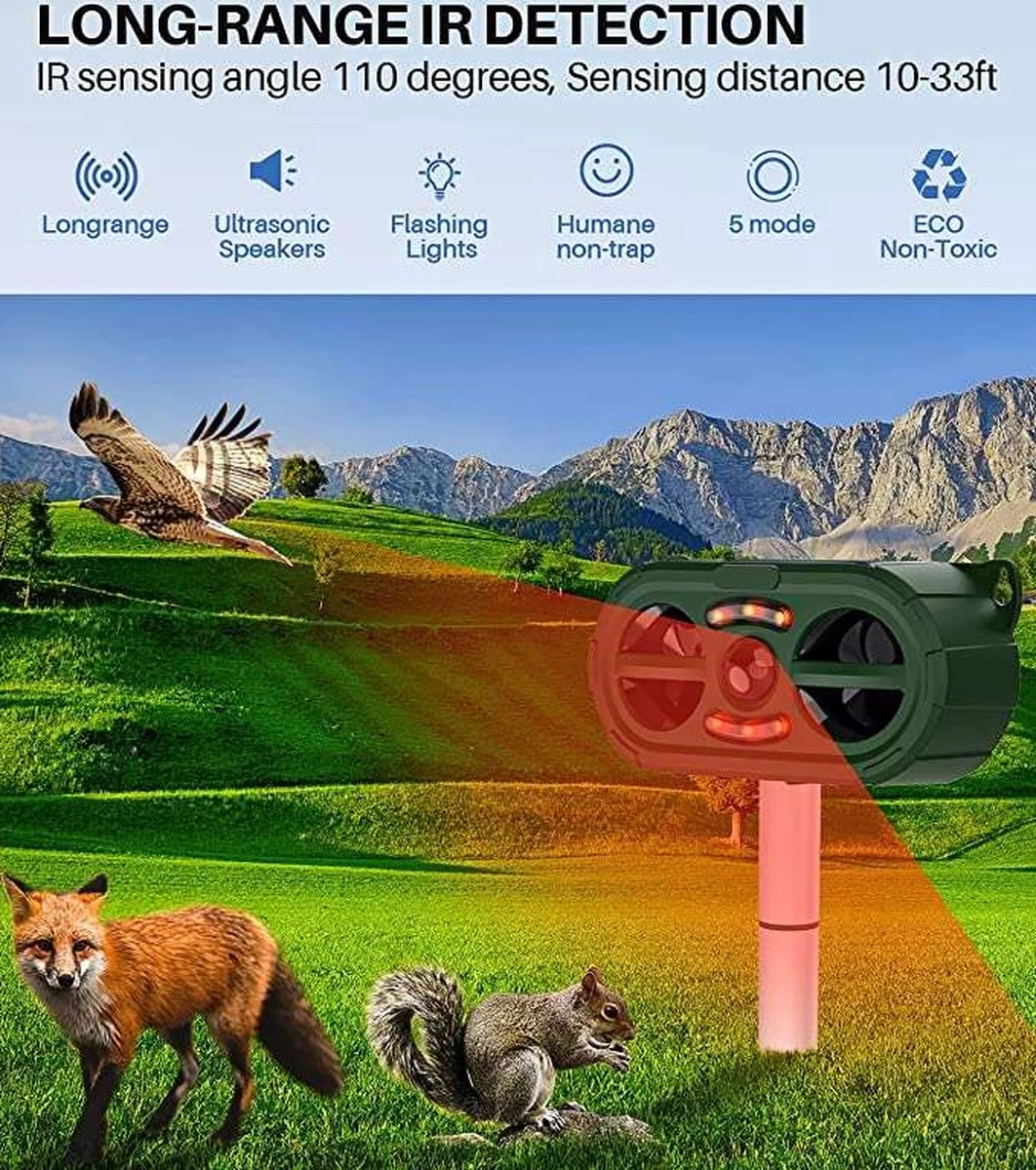 Verschillende frequenties voor verschillende dieren (katten, honden, muizen, ratten, vogels, vossen, marters, mollen, vleermuizen, wasberen, herten etc.)