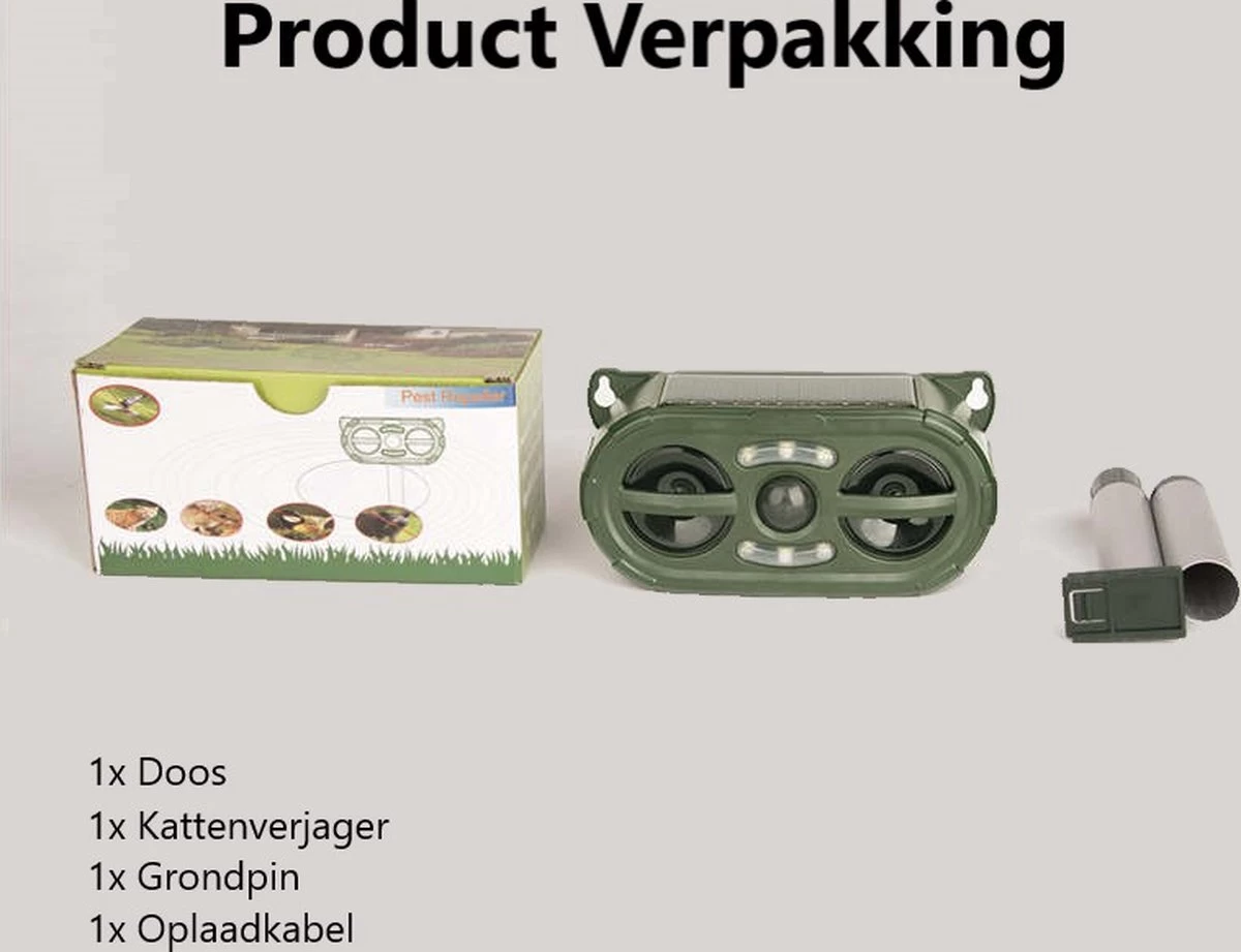 De Steks kattenverjager wekt zijn eigen stroom op d.m.v. zonne-energie. Ook is deze op te laden met de meegeleverde USB oplaadkabel. Dit product verbruikt alleen stroom wanneer de bewegingssensor een beweging detecteert, en zal de rest van de tijd op de standby-modus staan waardoor het energieverbruik zo efficiënt mogelijk benut word. Tevens is dit product spatwaterdicht en bestand tegen alle weersomstandigheden.