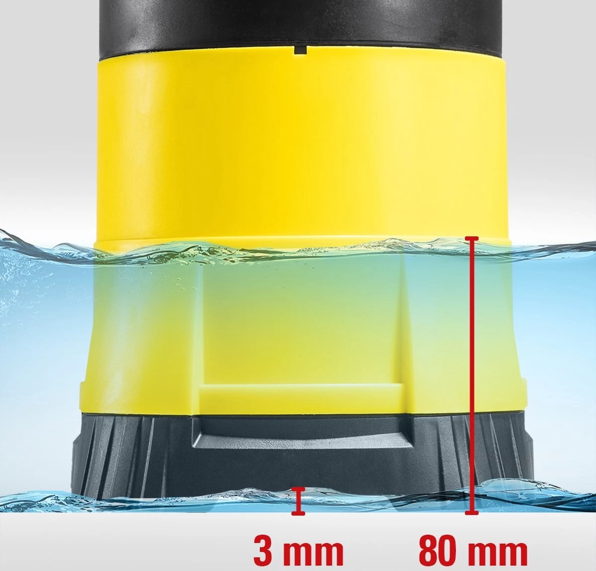 De handige, geintegreerde zwemschakelaar dient als niveaubesturing van de waterstand in het af- en leeg te pompen reservoir. In de automatische stand schakelt zich de pomp naargelang de hoogte van de zwemschakelaar automatisch in en uit. In continue-bedrijf maakt deze pomp een vlakzuiging tot 3 mm restwaterstand mogelijk.