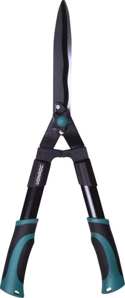 - Heggenschaar: 57cm lang met 22,9cm golvende bladen, geschikt voor het knippen van een heg, heester of struik met een maximale tak diameter van Ø 6mm. De golvende bladen houden het te snijden materiaal in het snijgebied en voorkomt dat het wegglijdt. De snijbladen zorgen voor nauwkeurige en zuivere sneden en dat maakt de heggenschaar geschikt voor het snijden van vers hout.