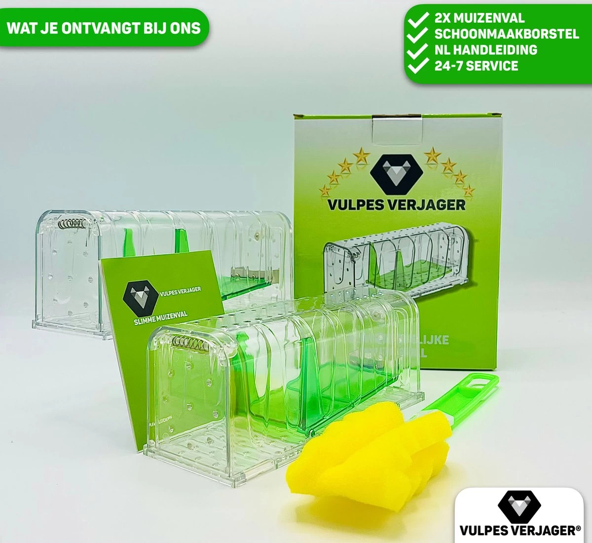 De muizenvallen zijn diervriendelijk, aangezien deze vrij zijn van giftige stoffen en chemicaliën en ook vrij zijn van klemmen en naalden, die de muizen en ratten pijn kunnen doen. Zo heb je met de muizenvallen van Vulpes Verjager® een diervriendelijke oplossing in huis gehaald!