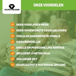 Zo blijven je tuin en dak vrij van vieze vogelpoep en heb je ook geen last van het geluid dat de vogels maken.