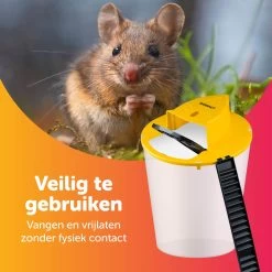 Een groot voordeel van muizen vangen met een emmer is dat je eenvoudig meerdere muizen kunt vangen. En ook als rattenval is deze methode uitermate geschikt. Je zet de val in een handomdraai in elkaar (zie voorbeeld bij de afbeeldingen) en plaatst de val vervolgens op een emmer met een dunne rand en een diameter van circa 30cm. Bevestig de meegeleverde trap aan de val en plaats de emmer waar de dieren vaak komen. Je kunt de val zowel binnen als buiten gebruiken. Wanneer je de dieren hebt gevangen, kun je ze eenvoudig vrijlaten.