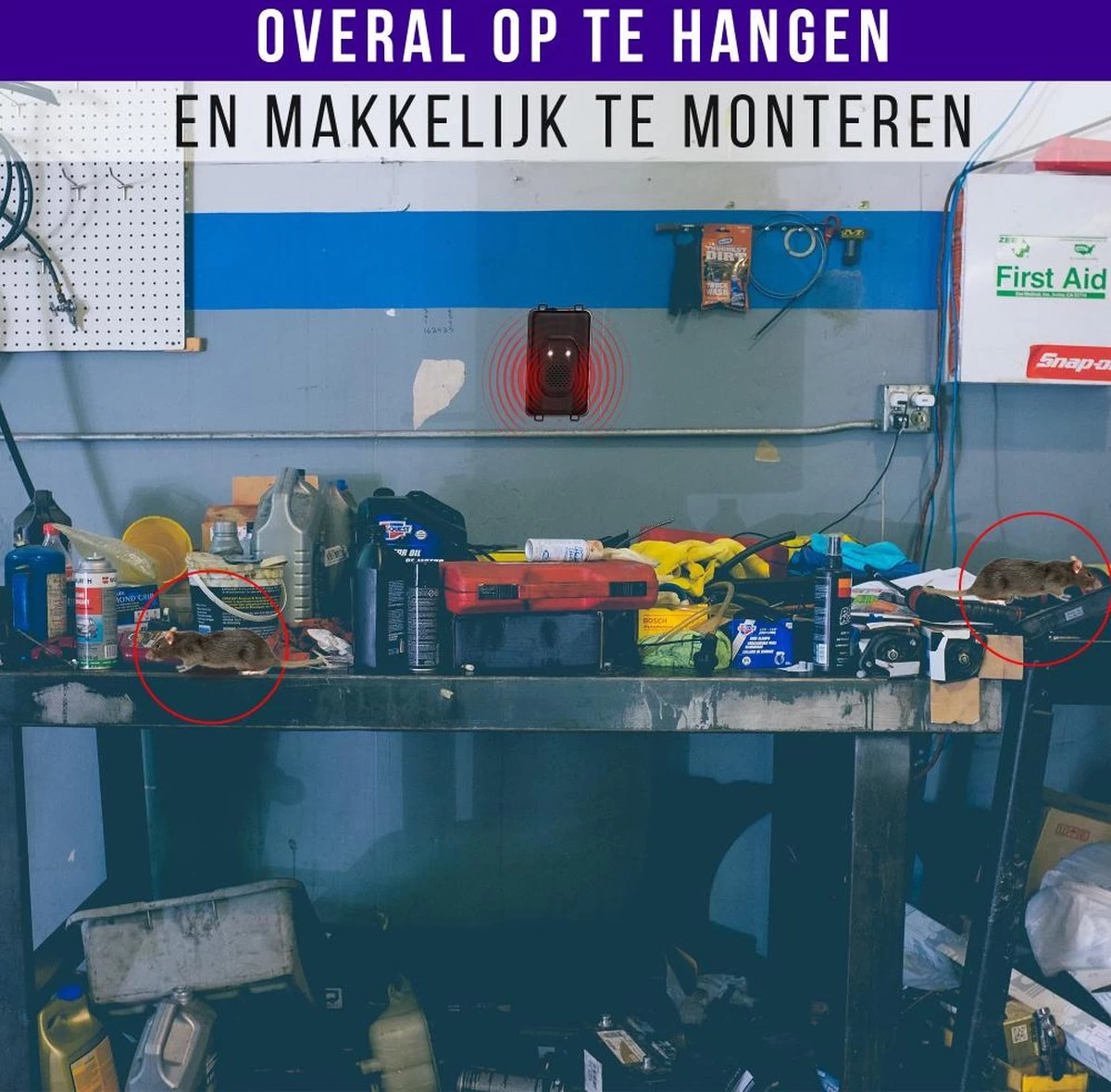 - Werkt overal: De verjager kan door de accu van je auto, via een USB-aansluiting of batterijen voorzien worden van stroom. Dit zorgt er voor dat het apparaat nooit uit zal vallen en in elke ruimte gebruikt kan worden.