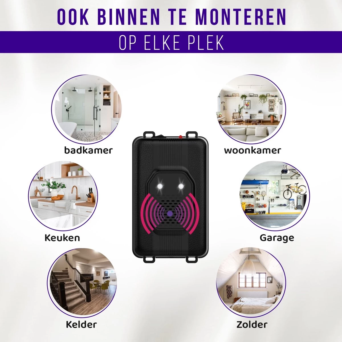 - Diervriendelijk: De verjager gaat niet ten koste van het dierenwelzijn. Omdat dieren niet gelokt worden met gif, maar alleen afgeschrikt worden, zullen dieren op een veilige manier wegblijven uit jouw omgeving.